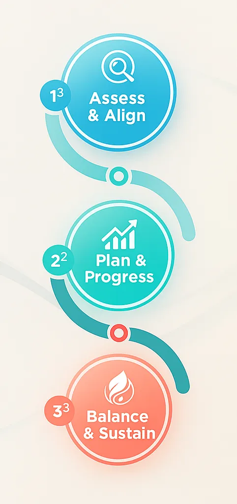 3️⃣ Balance & Sustain – Maintain your new rhythm with ongoing guidance and support.